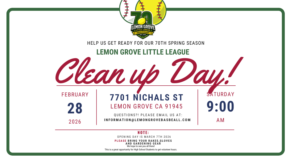League Clean up day SAVE THE DATE